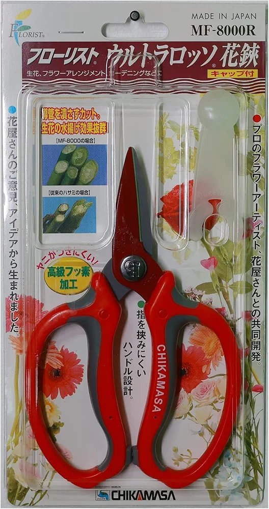 Chikamasa MF-8000R – aukštos klasės japoniškos floristikos žirklės, kurios sujungia preciziškumą, ergonomiką ir ilgaamžiškumą. Rekomenduojamos tiek profesionalams, tiek namų floristams, vertinantiems švarų pjūvį ir komfortą.