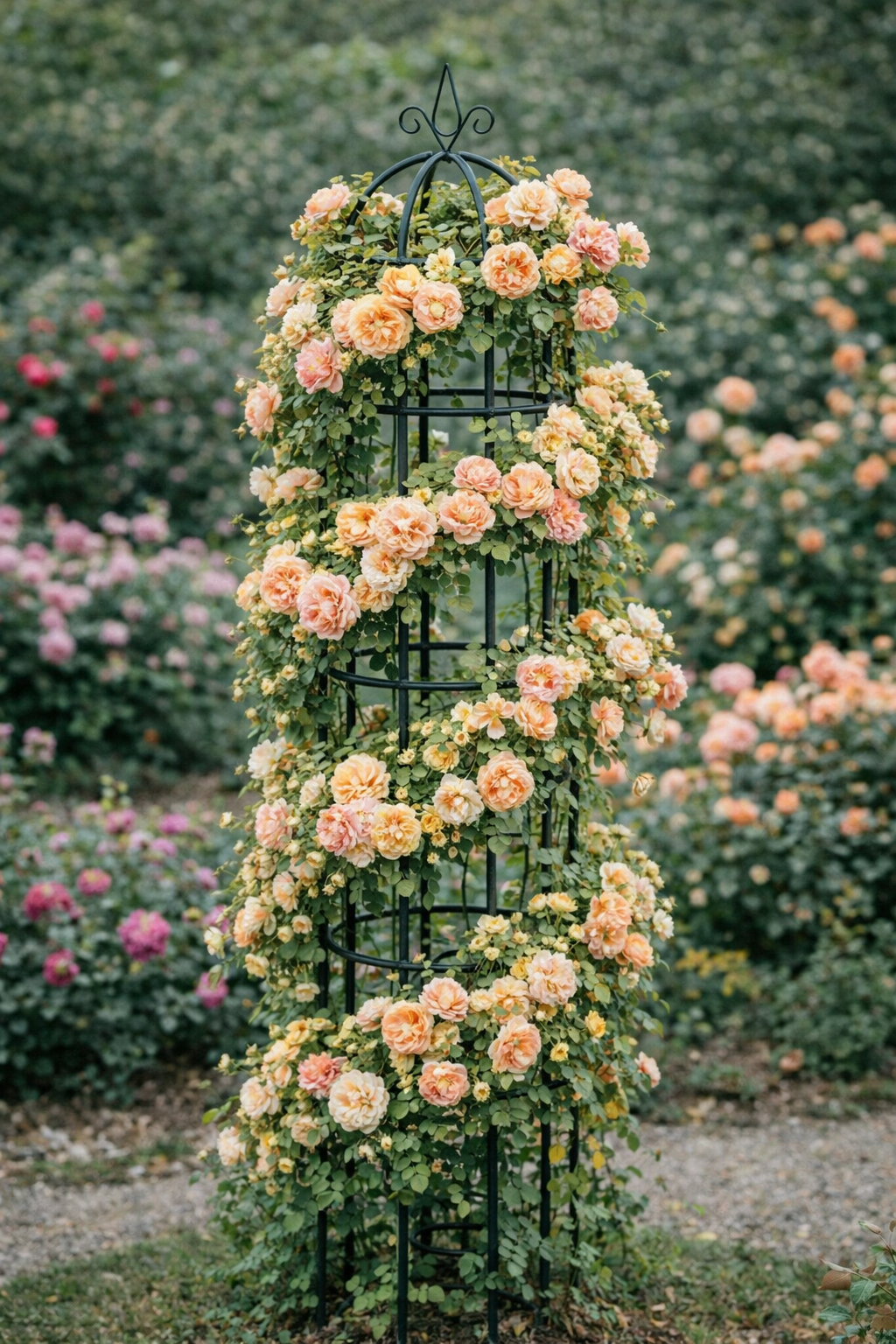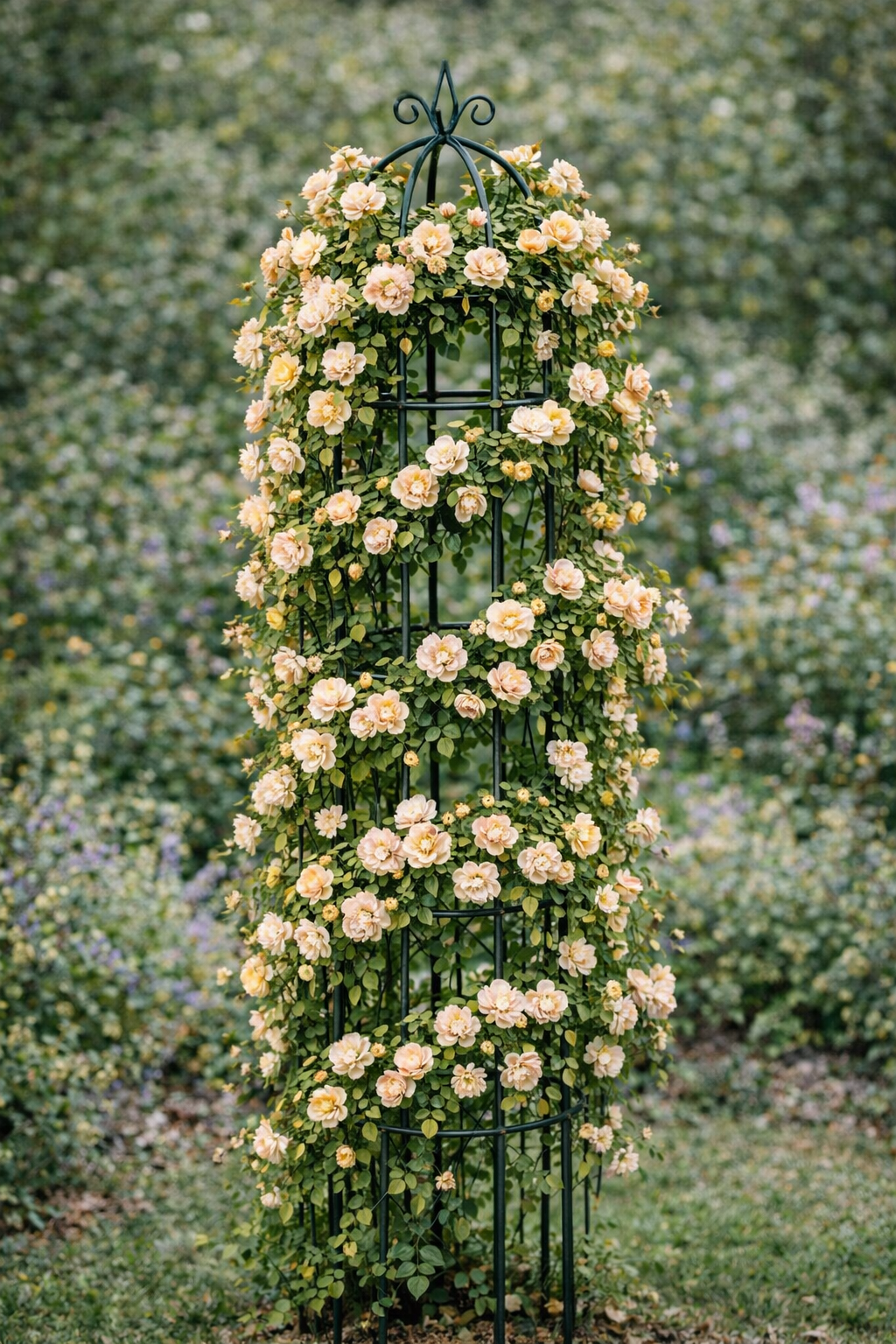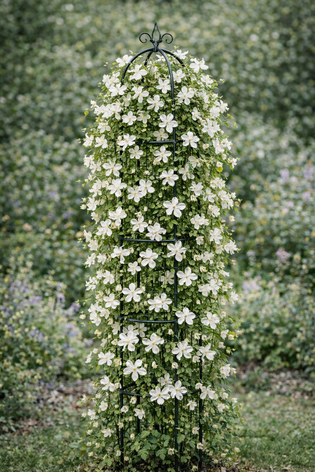 Aukštas ir stabilus metalinis obeliskas skirtas vijokliniams augalams formuoti ir auginti. Konstrukcija suteikia patikimą atramą, leidžia augalams kilti į viršų ir gražiai pasiskirstyti. Dėl savo pločio ir svorio šis modelis tinka ne tik lengviems vijokliams, bet ir galingesniems augalams, įskaitant vijoklines rožes. Dekoratyvi viršūnė paverčia obeliską stilingu sodo akcentu.