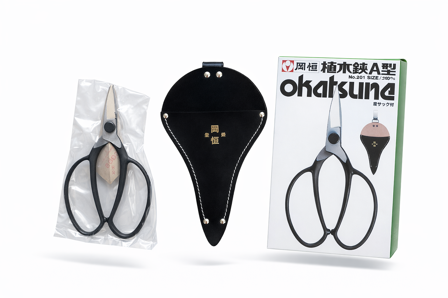 Japoniškos Okatsune No.201 žirklės su dėklu – itin aštrios, tikslios ir patikimos genėjimui bei formavimui.